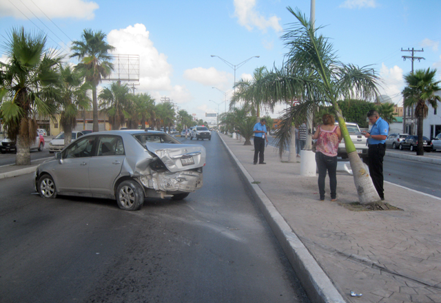 26/08/2015 - Un raudo cafre del volante no identificado, propició una fuerte colisión vial, en las avenidas Lauro Villar Ochoa y Mar Caribe, tras darle un "cerrón" al carro de una mujer, la cual a