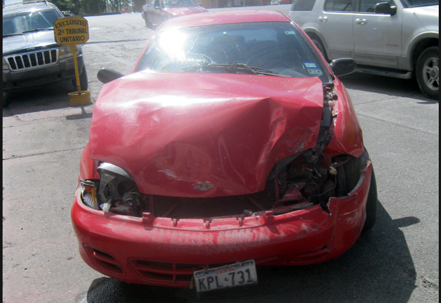 24/08/15.-Un individuo se embriagó con "agua de fuego", y al no medirse y tripular un automóvil, lo estrelló contra una camioneta pick up, estacionada en unas calles de la colonia Voluntad y Trabaj