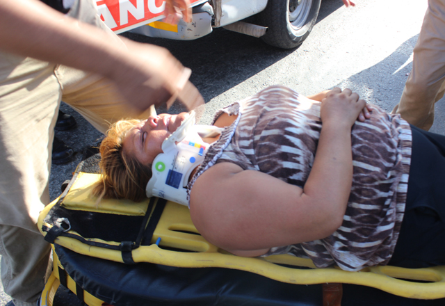 12/08/2015 - Una mujer que iba enferma a un consultorio de las avenidas Marte R. Gómez y Tchaikovsky, ingresó lesionada a urgencias del Hospital General "Dr. Alfredo Pumarejo", al chocar un cafre d