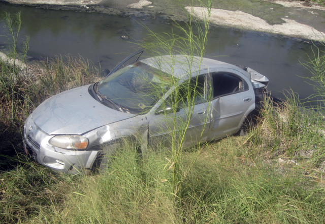 13/08/2015 - Un estudiante del fraccionamiento Los Frailes, resultó lesionado al chocar su carro con un poste de fierro de alumbrado público, y precipitarse al canal de aguas negras de la avenida 1