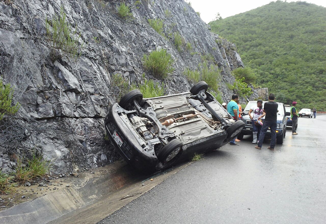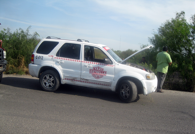 13/08/2015 - El conductor de una camioneta taxi, se volcó en el libramiento Emilio Portes Gil, antes de llegar a la Brecha 30, que conduce al ejido La Venada, al evitar chocar contra un camión de B