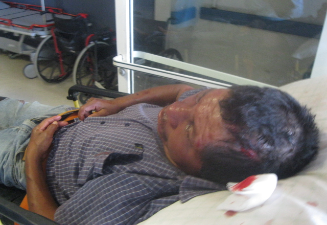 11/08/15.- Montoneros delincuentes le desfiguraron el rostro a golpes a un ebrio residente de la colonia Los Ébanos, el cual ingresó de emergencia al Hospital General "Dr. Alfredo Pumarejo". Bartolo
