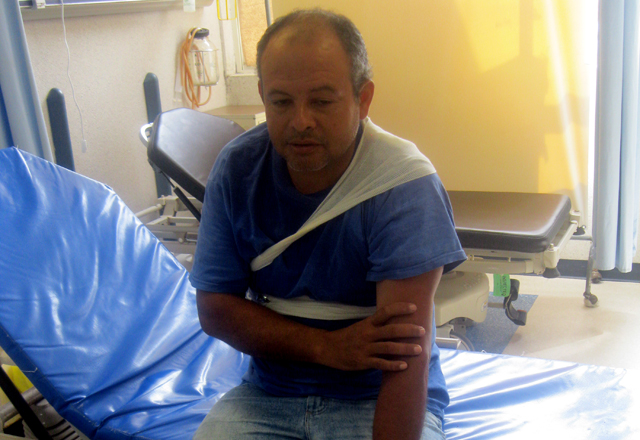 3/08/2015 - Un empleado del municipio resultó fracturado de una clavícula y con golpes en el cuerpo, al ser chocado su automóvil por ebrio comerciante de frutas y verduras a la entrada del fraccio
