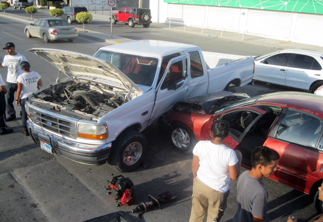 11/07/15.- Imprudente conductor causó lesiones a dos personas, al protagonizar un choque carambola la mañana de ayer, en el cruce de las avenidas Pedro Cárdenas Gutiérrez y Marte R. Gómez. Antoni