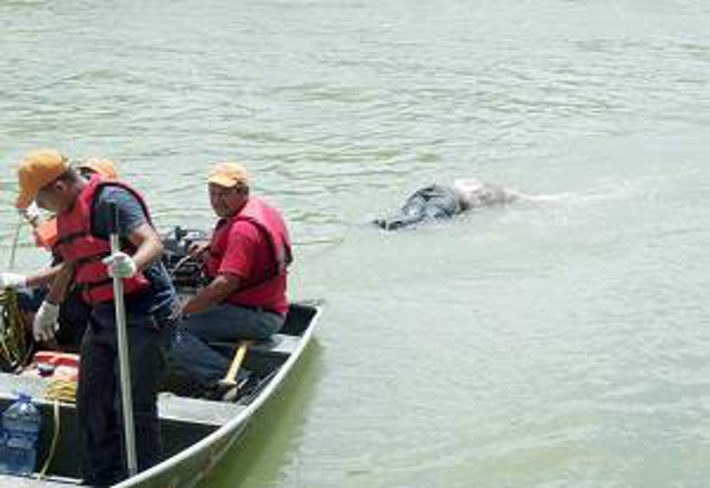Reynosa,13/07/15 .- El cuerpo de un sujeto presuntamente originario de El Salvador, por el enorme tatuaje que traía en su estómago, fue sacado de las peligrosas aguas del río Bravo por el equipo de