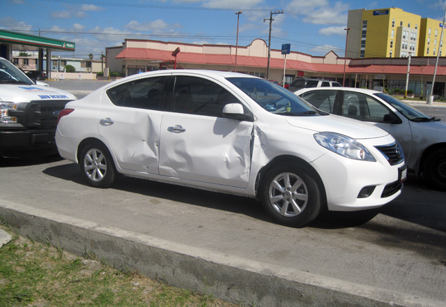 13/07/2015 - Tres personas salieron lesionadas en un fuerte choque de vehículos, acontecido en el cruce de las calles Sexta y Tlaxcala, del fraccionamiento Moderno. Franco Grava Mendoza, de 23 años