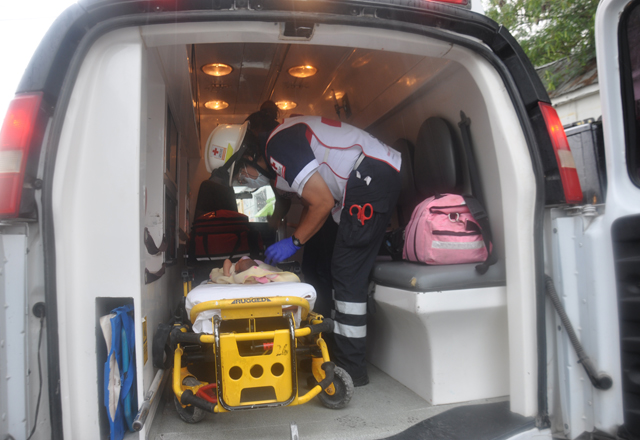 22/05/15.-Una pequeña de apenas cuatro días de nacida tuvo que ser atendida por los paramédicos de la Cruz Roja debido a la imprudencia de un empleado de la empresa constructora Pemsa, quien al atr