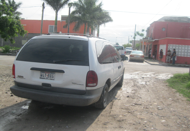 13/04/15.-Una mujer no identificada, que andaba "hasta atrás" de alcoholizada, chocó la camioneta minivan que tripulaba, con un carro estacionado en calles de la colonia Campestre del Río Dos, para