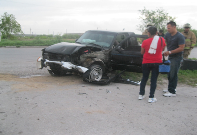 31/03/15.-Tres personas lesionadas, una presuntamente grave, y daños materiales por miles de pesos, dejó un fuerte choque de un carro y una camioneta pick up, en el cruce de la carretera del Sendero