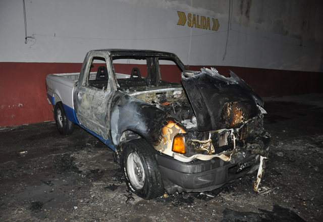 31/03/15.- Una fuerte movilización se registró en horas de la noche luego de que le reportaran a la central de Bomberos que había una camioneta quemándose en las avenidas Lauro Villar y San Carlos