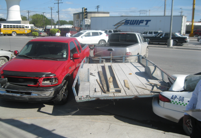 25/03/15.-Un estudiante de Medicina, víctima de un "cerrón", protagonizó un aparatoso choque carambola con una camioneta de la cual pendía una traila, proyectándola con un carro taxi estacionado,
