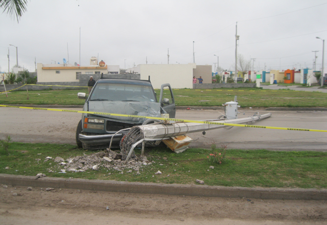 23/03/15.-Un conductor no identificado, con su camioneta pick up, chocó y derribó un poste de concreto, con el transformador, de la Comisión Federal de Electricidad, sobre la avenida principal, y a