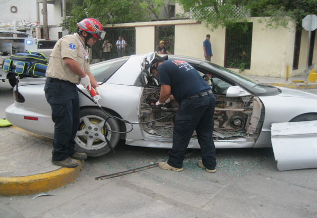 24/02/15.-Una jovencita quedó prensada en el automóvil deportivo, en el que viajaba de acompañante, en las calles Calixto de Ayala y Plan de Ayutla, al chocarlo el carro de una cafre que huyó, sie