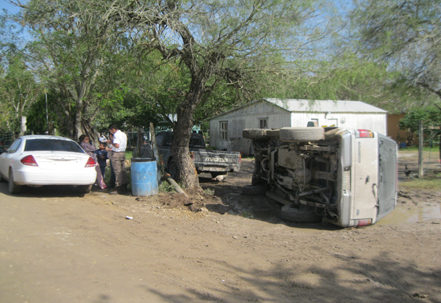 17/01/15.- El descuido de un ama de casa al conducir su camioneta sin precaución en unas calles del ejido El Refugio, ubicado en el kilómetro 15 de la carretera Lauro Villar, provocó que chocara co