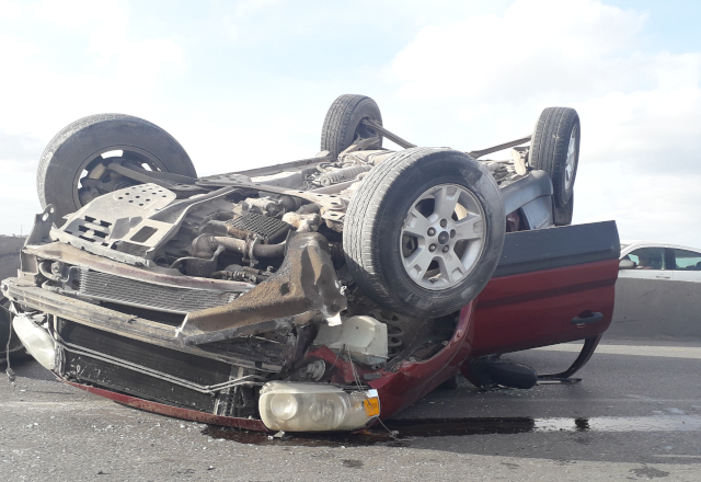 De una muerte segura se salvó una joven mujer la tarde de ayer, al chocar y volcarse con la camioneta que tripulaba, en la joroba del puente, de las avenidas Roberto Guerra Cárdenas y Acción Cívic