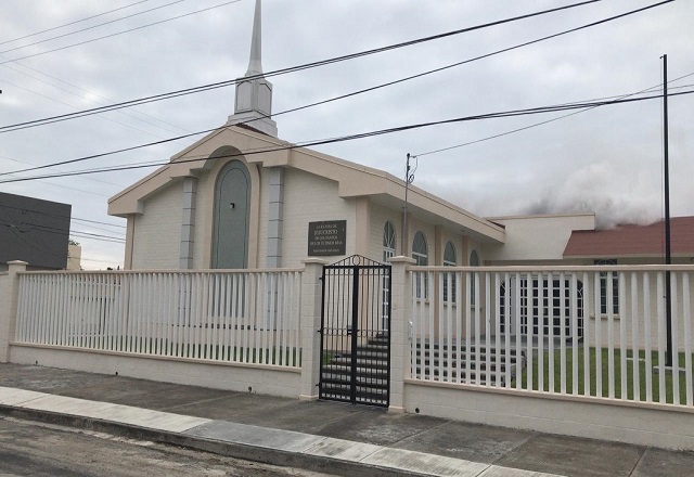 Lo que aparentemente inició como un cortocircuito en la balastra de una lámpara, desencadenó un incendio en el templo mormón “Iglesia de Jesucristo de los Santos de los Últimos Días” que se