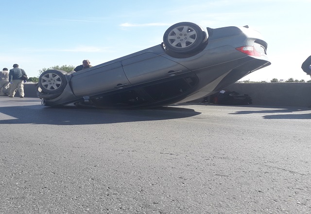 Con golpes contusos en el cuerpo resultó un estudiante del Tecnológico, en horas de la mañana al chocar su automóvil con un muro de concreto y volcarse en la joroba del puente vehicular de las ave