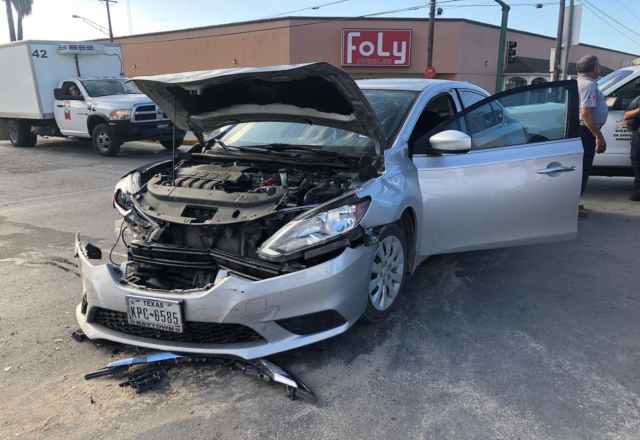 Un residente de Houston, Texas, se pasó la luz roja de un semáforo y provocó un aparatoso choque en el cruce de las avenidas Pedro Cárdenas y Longoria, donde impacta su vehículo contra la camione
