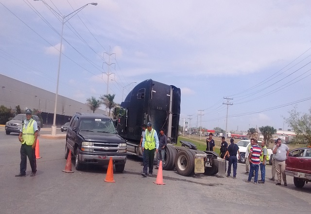09/06/2018.- Un cafre del volante quedó prensado varios minutos en la camioneta que conducía, al estrellarla contra un tractocamión, en la carretera Lauro Villar Ochoa y Pedregal, frente al Parque