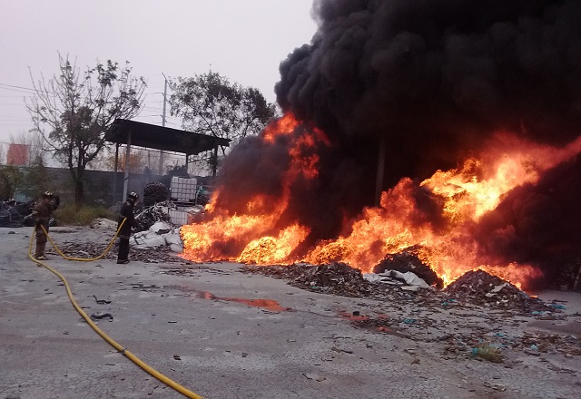 30/12/2017.- Dantesco incendio en una bodega abandonada, de considerable cantidad de desechos plásticos industriales, y automotrices, causó la movilización de tres camiones del Heroico Cuerpo de Bo