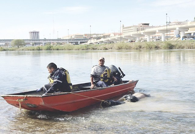 02/02/2018-Nuevo Laredo, Tam.- Recupera personal del equipo acuático de Bomberos el cuerpo de un hombre que se presume murió ahogado al intentar cruzar por el rÃo Bravo a Laredo, Texas. La recupera