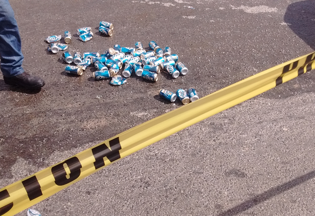 04/07/2017.- Cientos de cervezas se echaron a perder, al salir disparadas del camión en el que eran transportadas sobre la avenida Rigo Tovar y boulevard Manuel Cavazos Lerma, tras de que presuntamen
