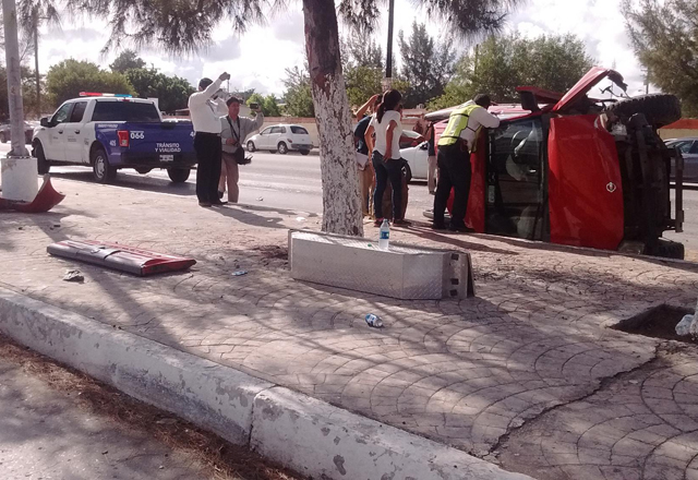 27/06/2017.- Dos primas resultaron lesionadas, una de consideración, la mañana de ayer, al volcarse con la camioneta pick up en la que viajaban, en el boulevard Manuel Cavazos Lerma, frente a la esc