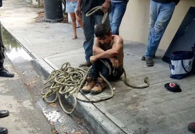 28/06/2017.- Uno de dos ladrones que entraron a una casa del fraccionamiento Moderno a robar dos televisores de plasma, fue retenido, amarrado y vapuleado por vecinos de la víctima y finalmente entre
