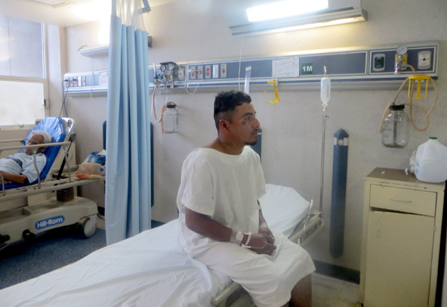 13/03/2017 - Delincuentes no identificados hirieron tres veces con arma blanca en la espalda a un particular, quien acompañado de su esposa llegó a urgencias del Hospital General "Dr. Alfredo Pumar