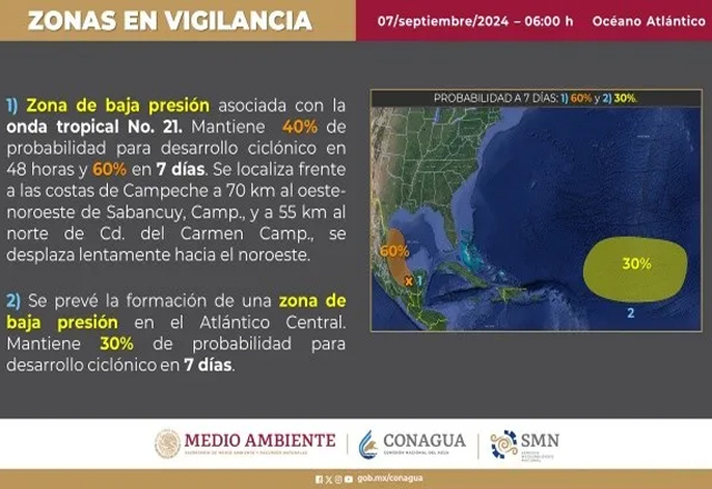 Son dos potenciales ciclones tropicales en las costas mexicanas, y uno más acercándose desde el Atlántico que se mantienen en zona de vigilancia por la Conagua. De acuerdo a la Conagua, el primero