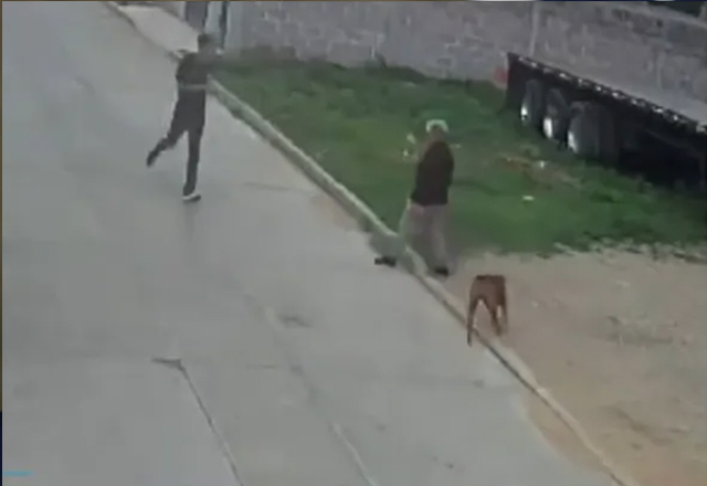 En el metraje se puede ver a la mujer caminando tranquilamente cuando de repente el perro se le acerca. Una mujer resultó con severas heridas en las piernas tras ser atacada por un perro, el cual era