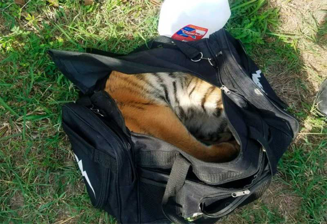 01/05/18.- Contrabandistas abandonaron un cachorro de tigre asiático en un bolso deportivo al huir de regreso a México luego de intentar cruzar el río Bravo hacia Texas. Funcionarios de la Oficina