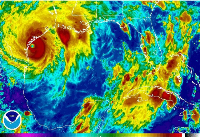 25/08/17.- El Centro Nacional de Huracanes informó esta noche que Harvey se convirtió en un huracán categoría 4 tras aumentar sus vientos a 130 millas por hora (mph) mientras avanza hacia la costa