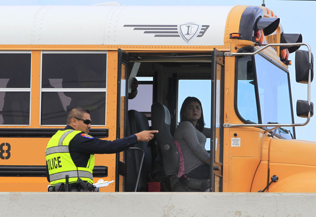17/11/2016 - Un distrito escolar del Valle del Río Grande permitió hacer un recorrido dentro de uno de sus autobuses para conocer los riesgos existentes cuando se viaja en uno. Salidas de emergenci