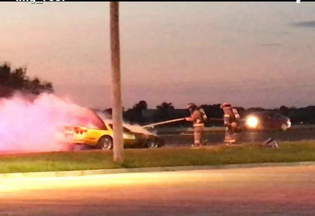 McAllen, 30/09/16.- Una escena como sacada de película se pudo observar en la ciudad de Mission ya que un auto deportivo Corvette se prendió en llamas de una forma inesperada. El incendio se suscit