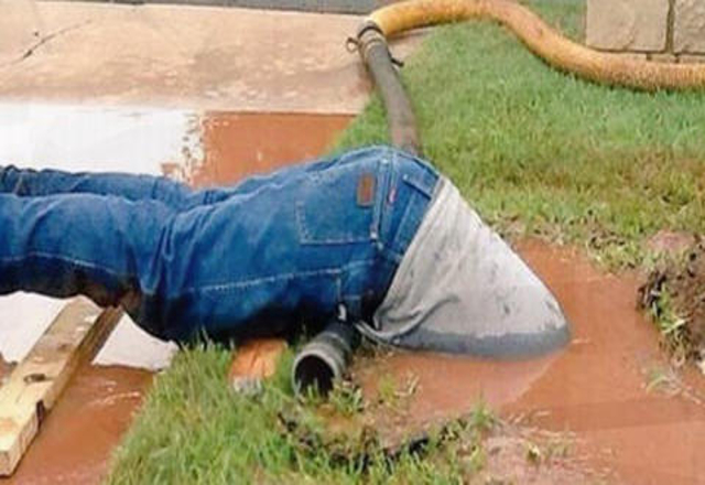 25/08/16.-Entregarse cuerpo entero al trabajo es lo ideal en toda profesión y eso es lo que hizo este hombre en el condado Hook en Dallas. La foto la tomó la dueña de casa Andrea Adams cuando el pl