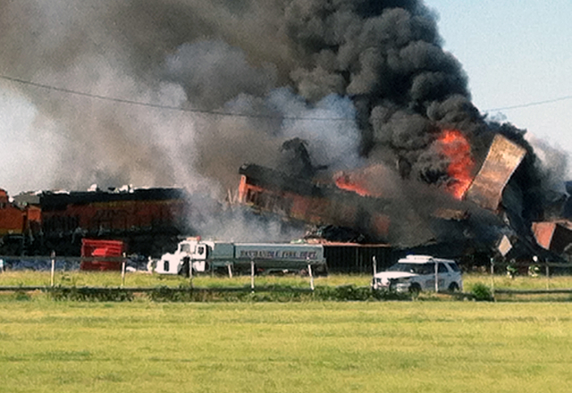 28/06/16.-Una persona resultó herida y tres más se encuentran desaparecidas tras el choque de frente de dos trenes de carga, cerca de la pequeña comunidad de Panhandle, en el noroeste de Texas. Los