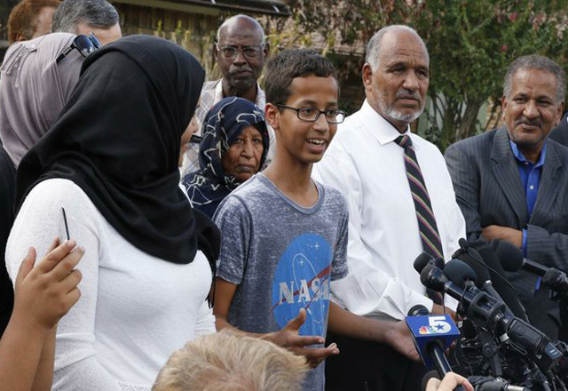 21/09/2015 - Irving.-Ahmed Mohamed pasó en unas cuantas horas de ser arrestado por policías de Irving en la preparatoria MacArthur a entrevistas con programas de televisión nacional. Ahmed se conv