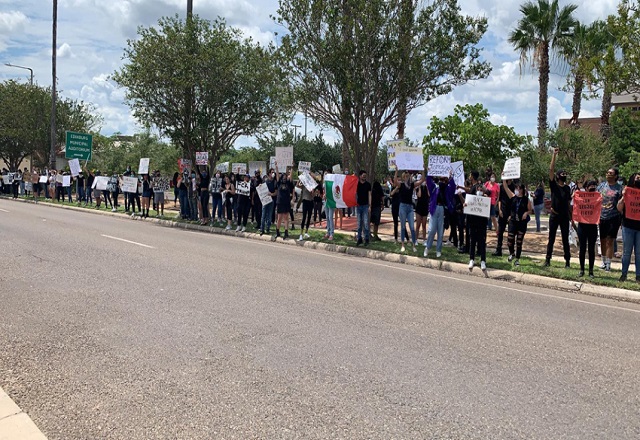 Decenas de manifestantes se agruparon en la ciudad de Edinburg el sábado para exigir justicia por la muerte de George Floyd, un hombre afroamericano quien murió a principios de esta semana luego de