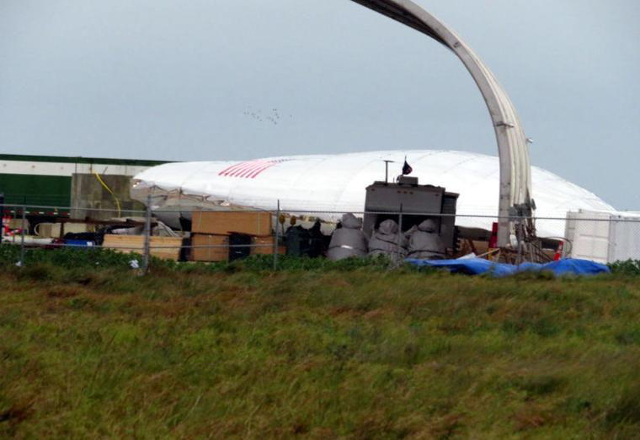 Brownsville , 23/01/19.- El prototipo Starship Hopper de SpaceX, recientemente completado en el sitio de lanzamiento de Boca Chica al este de Brownsville y en espera de vuelos de prueba, no fue rival