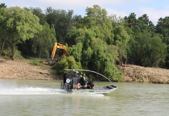 05/11/18.- Desde temprano hora de este lunes se pudo apreciar maquinaria realizando desmonte y talando algunos árboles de la orilla del río Bravo del lado norteamericano. Aunque no se dado a conoc