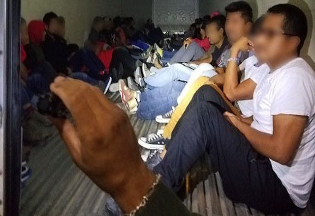 10/10/18.- Agentes de la Patrulla Fronteriza asignados al punto de control en la carretera interestatal 35 al norte de Laredo, Texas descubrieron a 43 ilegales que viajaban ocultos en un remolque refr