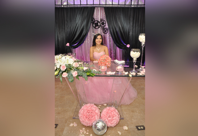 Mientras tanto el salón de la Hacienda San José se vestía de gala con todo el glamour de Hollywood y celebrar por todo lo alto este gran acontecimiento al iniciar Hannia una nueva etapa en su vida, causando sensación al llegar y caminar por la alfombra roja donde fue entrevistada en compañía de su mamá la Sra. Idolina, para después, como lo marca la tradición recocer ambas la amplia pista de baile y juntas iniciar el vals, y acompañada de sus chambelanes realizo una bella coreografía causando la euforia y emoción de los presentes, el baile dio inicio con la interpretación magistral del Carlos Colmenero y su banda Escandalo con un gran repertorio de canciones de moda.