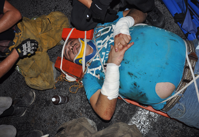 Todos ellos fueron atendidos por el personal de Protección Civil y de la Cruz Roja, para posteriormente ser llevados al área de urgencias del nosocomio local, donde también fue atendido el bombero Carlos Guerra, quien se lastimó al salir proyectado de la unidad de los tragahumo.