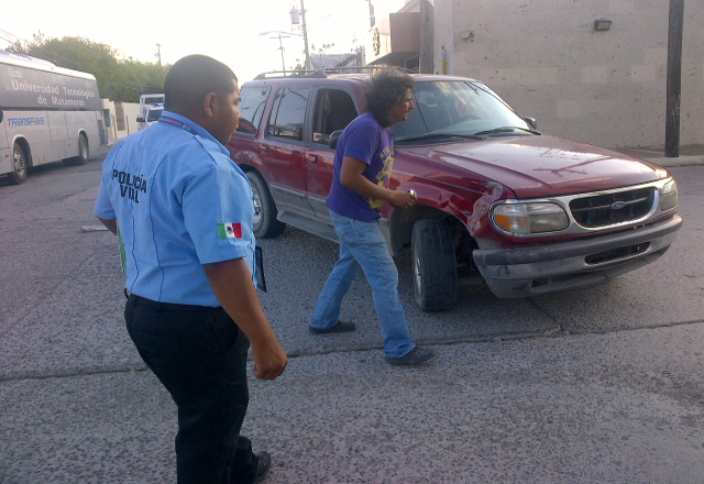 Carlos Barrios, conductor de la camioneta Explorer, y vecino de la calle Fresno No. 151 de la colonia Mariano Matamoros, explica que al llegar a la calle Michoacán, circulando por la 16 de Septiembre, éste vio que el camión estaba orillado, por lo que tras hacer su alto en el cruce, inicia marcha nuevamente, sin percatarse de que el operador del camión tenía las intenciones de dar vuelta, siendo entonces que al avanzar los dos, chocaron.