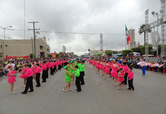 19/03/15.- Autoridades en general encabezaron el magno desfile para celebrar el 76 aniversario de la fundación de Valle Hermoso, la emancipación del municipio y la conmemoración de la expropiación petrolera.