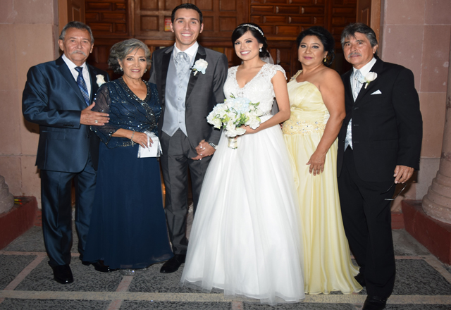 Participando como padrinos de velación, Lic. Luis García y Sra. Laura Estrada; de lazo, Ing. Andrés Medina López y Sra. Rosa Herrera de Medina; de anillos, Lic. Aimeé Rivera Nava, y de arras, Lic. Ernesto López de la Fuente y Sra. Mary de López.
