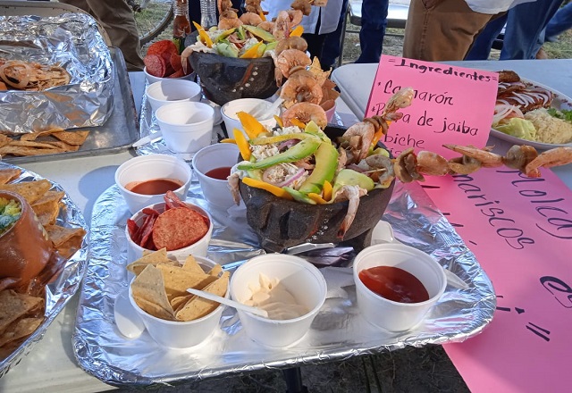 Las actividades de este día incluyeron varios concursos, entre ellos, el del mejor platillo típico regional, cuyo primer lugar lo obtuvo la señora Leticia Mateos y su hija Sandra Ileana Cervantes Mateos, quienes elaboraron un suculento molcajete de mariscos.