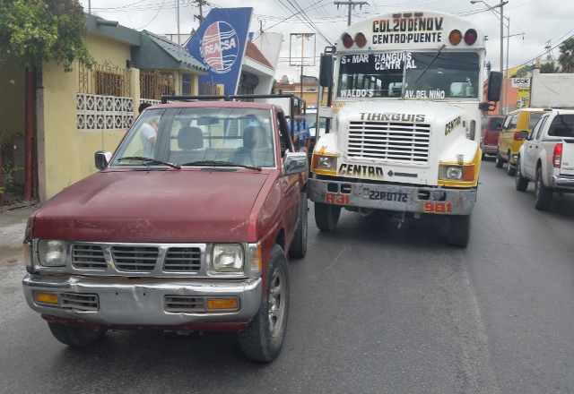 El primer accidente ocurrió cerca de las 12:20 horas, cuando el chofer de un camión de transporte público intenta rebasar a una camioneta Nissan pick up, al circular por las calles Primera y Washington pero termina chocándola en un costado, además de causar daños en la defensa trasera.