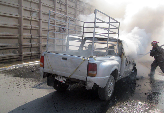 Luis Daniel Medrano no precisó el monto de las pérdidas materiales en el incendio de su camioneta, que quedó inservible del motor y de la cabina.